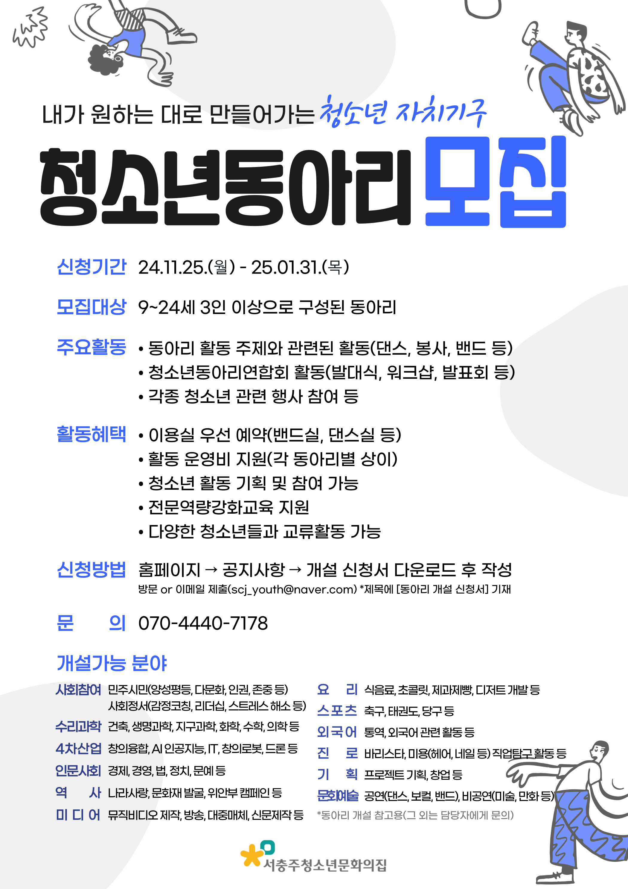 2025년도 신규 청소년동아리 및 신입부원을 모집합니다.