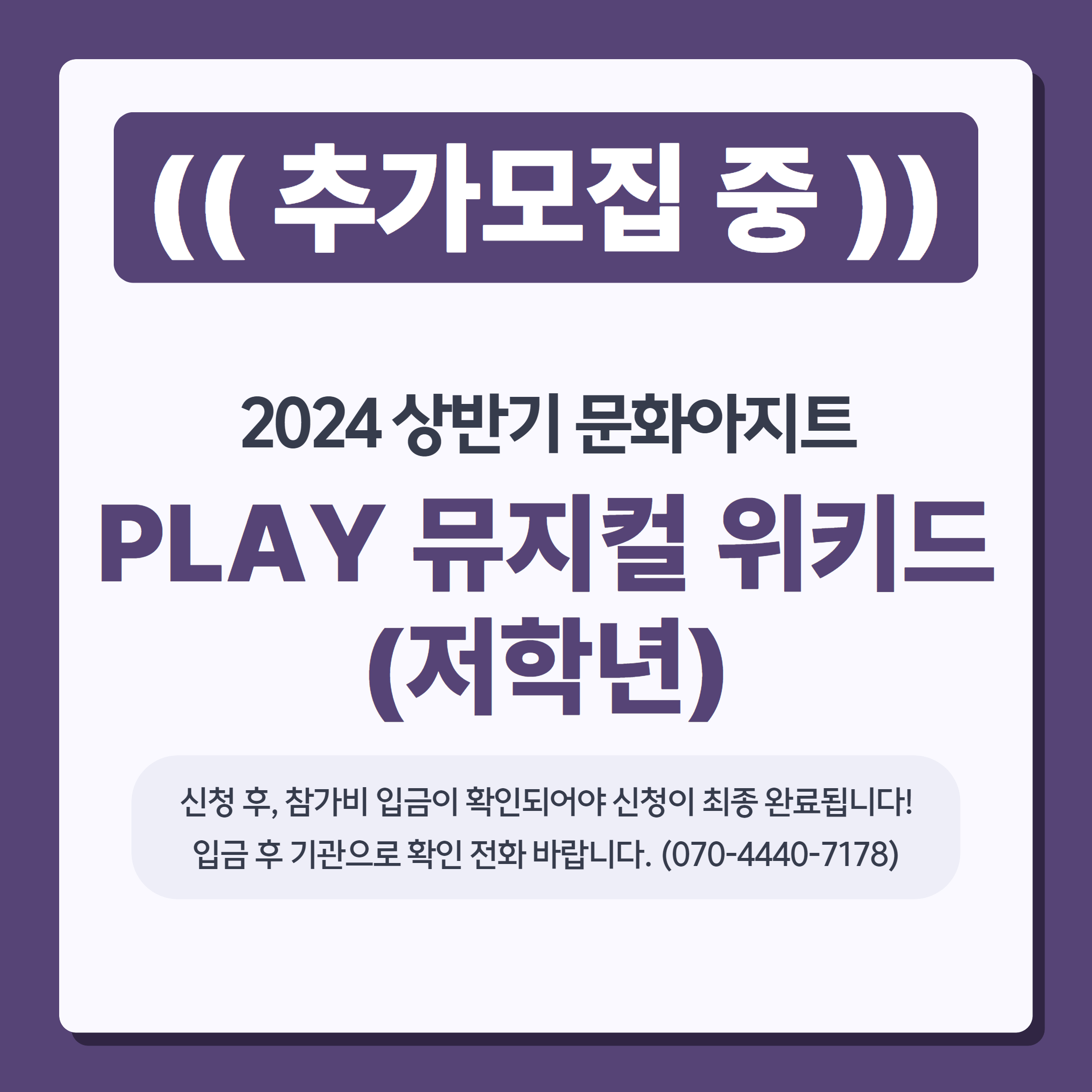 | 프로그램명 | 2024 상반기문화아지트 <PLAY 뮤지컬 위키드-저학년(뮤지컬)> |