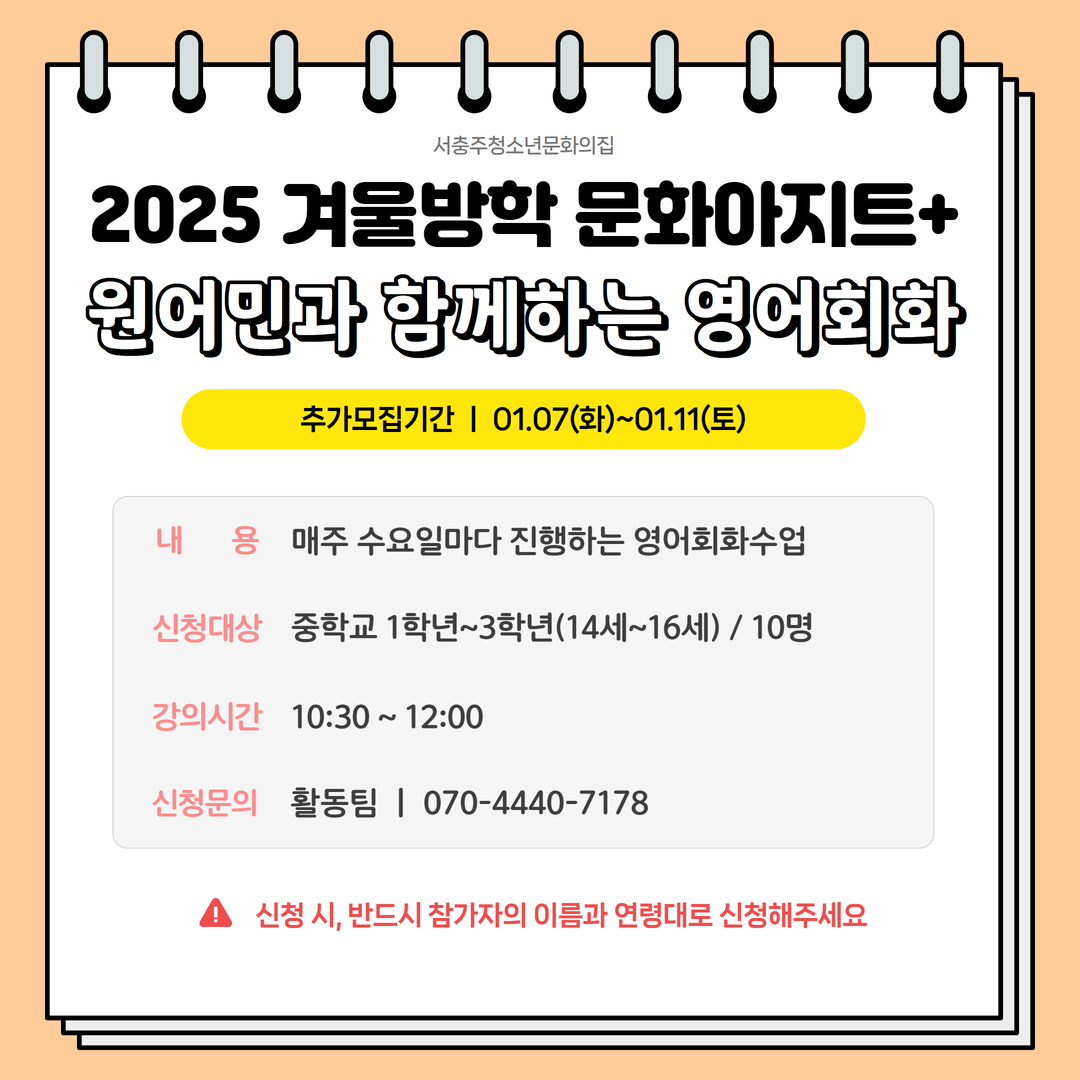 2025년도 겨울방학 문화아지트+ <원어민과 함께하는 영어회화 (영어회화)>수업입니다 !