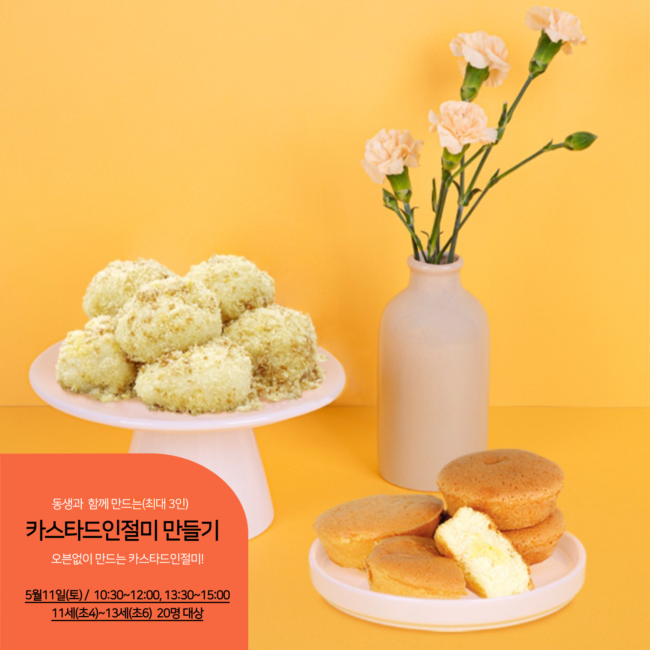 | 프로그램명 | 가정의달 5월愛(애) 함께해孝(효) 카스타드인절미 만들기(10:30~12:00) |