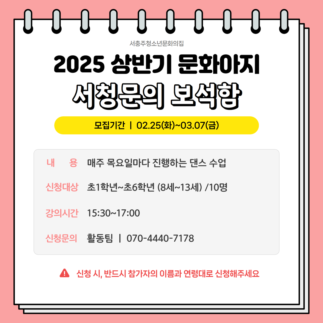 | 프로그램명 | 2025 상반기 문화아지트 " 서청문의 보석함(댄스)" |