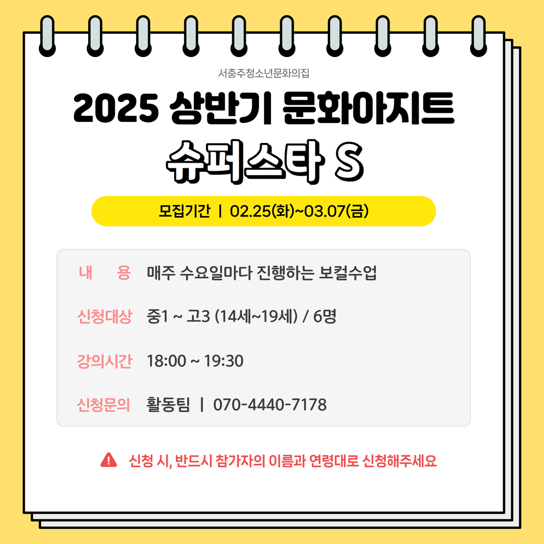 | 프로그램명 | 2025 상반기 문화아지트 "슈퍼스타 S (보컬)" |