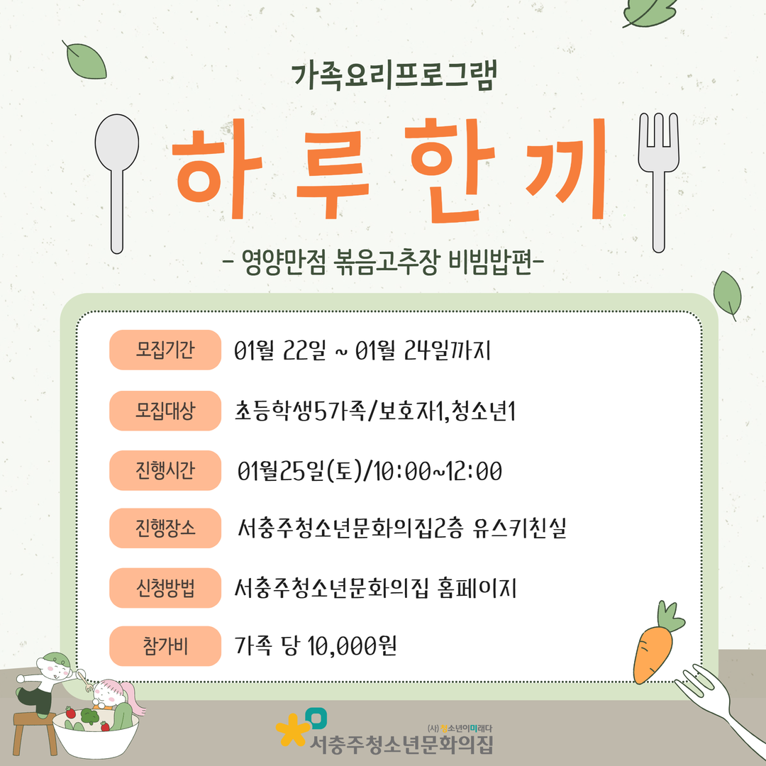 ✔ 장소: 서충주청소년문화의집 2층 유스키친실