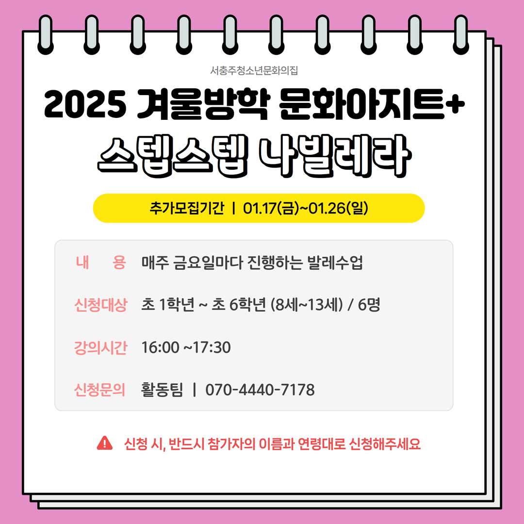 프로그램명 | ((추가모집))2025 겨울방학 문화아지트+ "스텝스텝 나빌레라" |