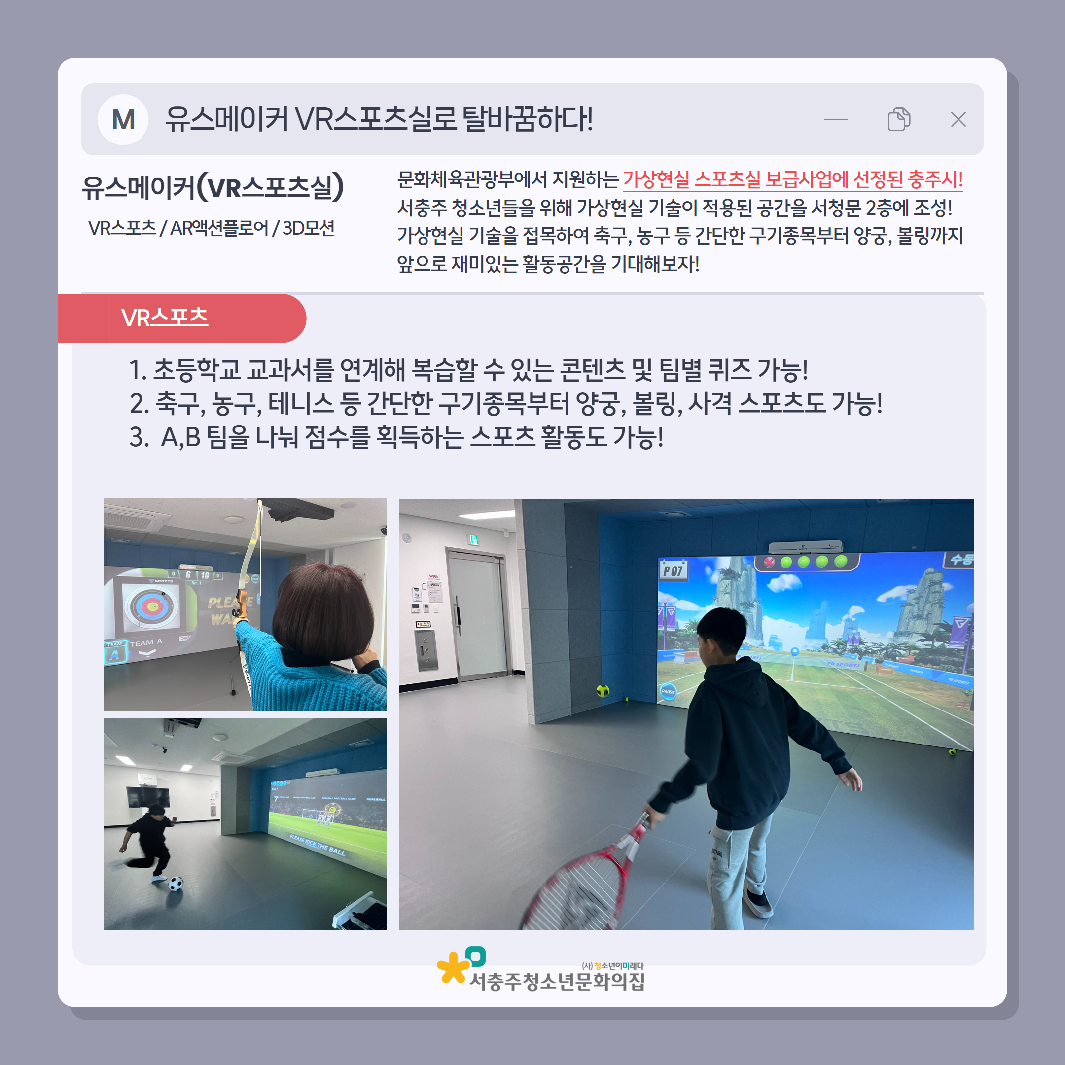 | 프로그램명 | 겨울방학 특별PG "VR스포츠체험" (일/16:00/초4~초6) |